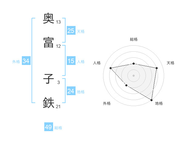 奥富 子鉄さんを姓名の画数から五運を鑑定