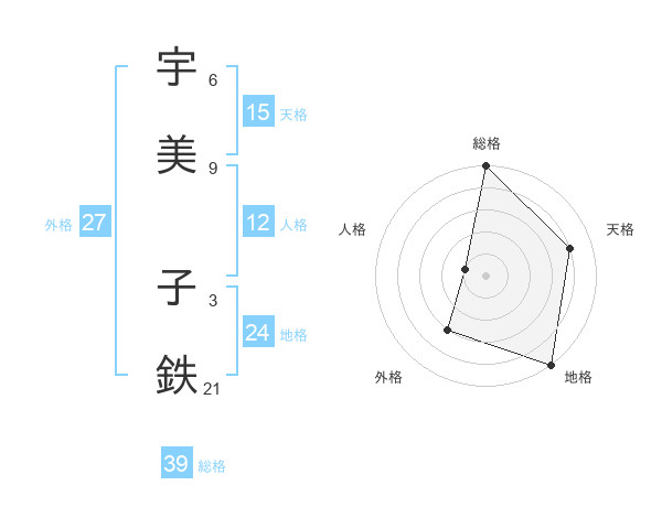 宇美 子鉄さんを姓名の画数から五運を鑑定