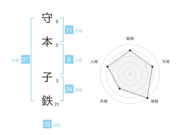 守本 子鉄さんの総格は35画の4点!