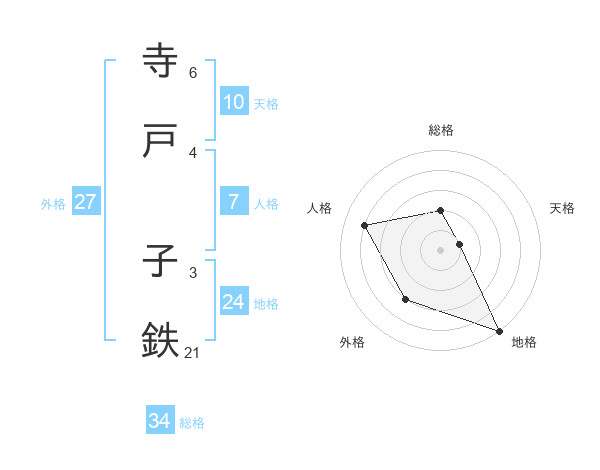 寺戸 子鉄さんの総格は34画の2点!