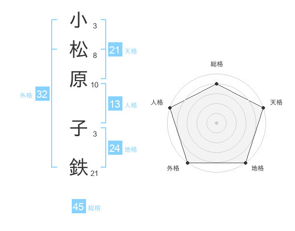 小松原 子鉄さんの総格は45画の4点!