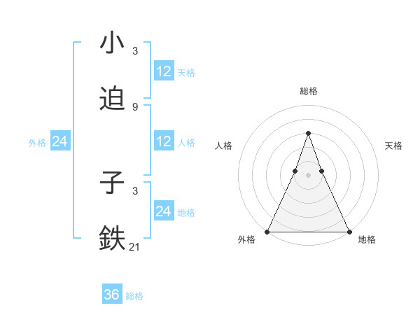 小迫 子鉄さんの地格は24画の5点!