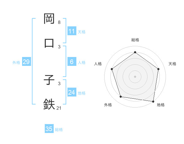 岡口 子鉄さんを姓名の画数から五運を鑑定