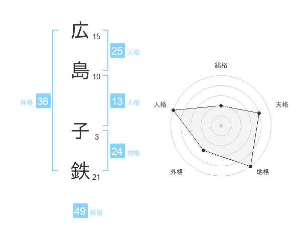 広島 子鉄さんを姓名の画数から五運を鑑定