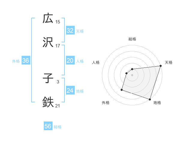 広沢 子鉄さんの天格は32画の5点!