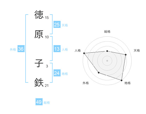 徳原 子鉄さんを姓名の画数から五運を鑑定