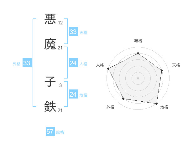 悪魔 子鉄さんの天格は33画の4点!