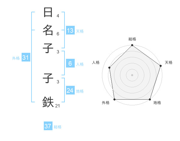 日名子 子鉄さんの外格は31画の5点!