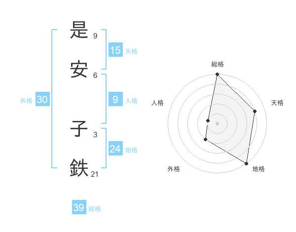 是安 子鉄さんを姓名の画数から五運を鑑定