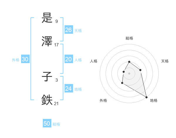 是澤 子鉄さんを姓名の画数から五運を鑑定