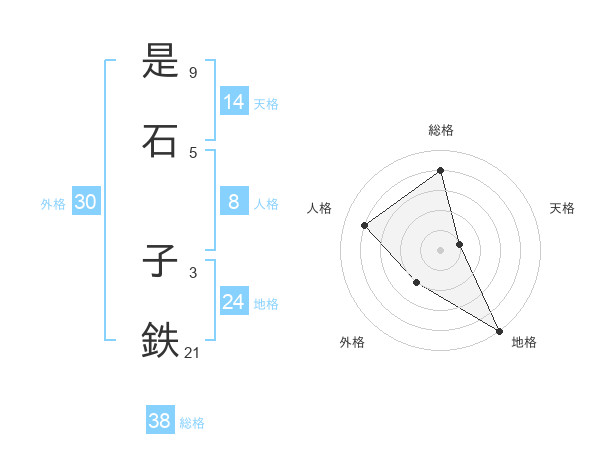 是石 子鉄さんを姓名の画数から五運を鑑定