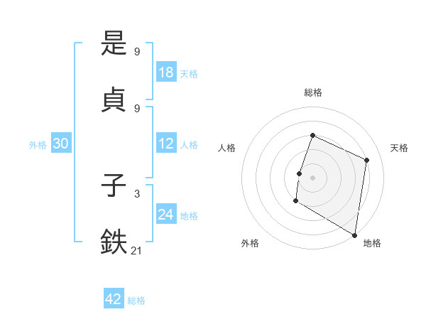 是貞 子鉄さんの天格は18画の4点!
