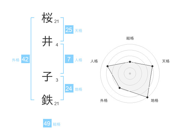 桜井 子鉄さんを姓名の画数から五運を鑑定