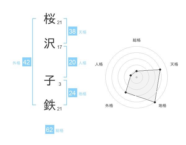 桜沢 子鉄さんの天格は38画の4点!