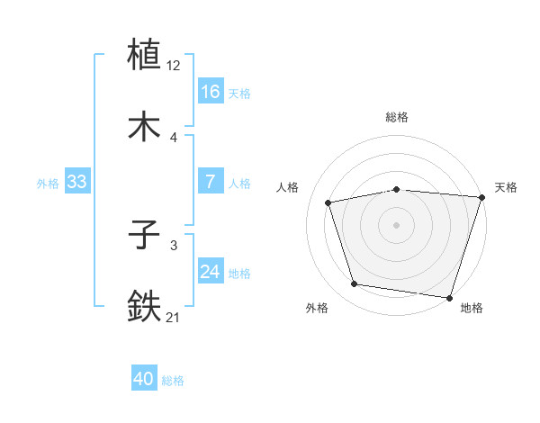 植木 子鉄さんを姓名の画数から五運を鑑定