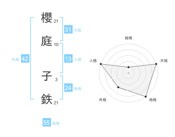 櫻庭 子鉄さんを姓名の画数から五運を鑑定