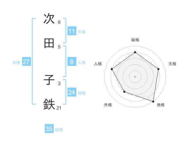 次田 子鉄さんの総格は35画の4点!