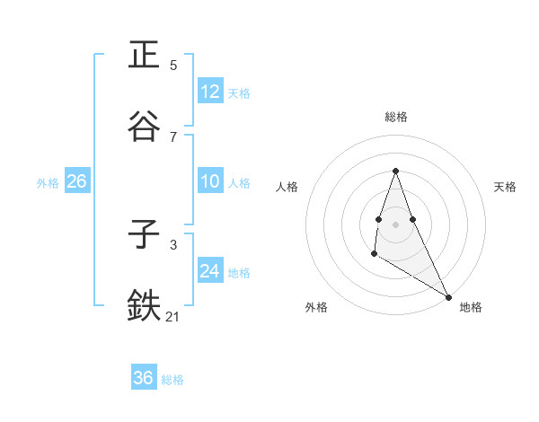 正谷 子鉄さんを姓名の画数から五運を鑑定