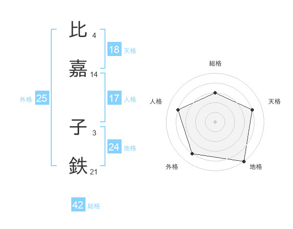 比嘉 子鉄さんの外格は25画の4点!