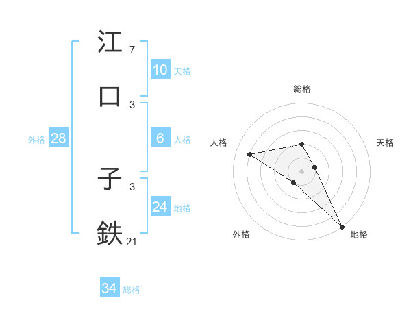江口 子鉄さんを姓名の画数から五運を鑑定