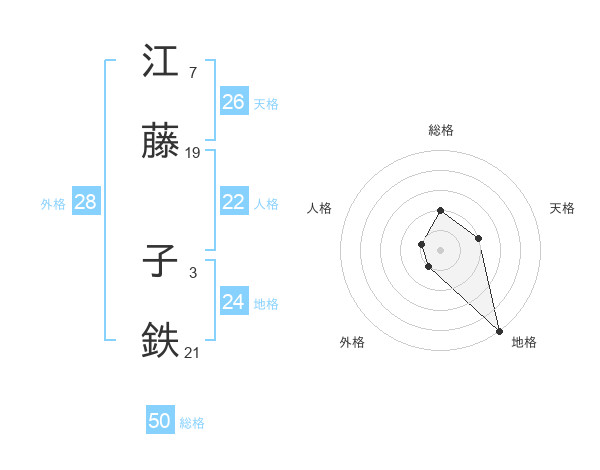 江藤 子鉄さんの地格は24画の5点!