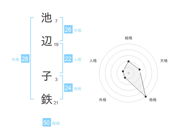池辺 子鉄さんを姓名の画数から五運を鑑定