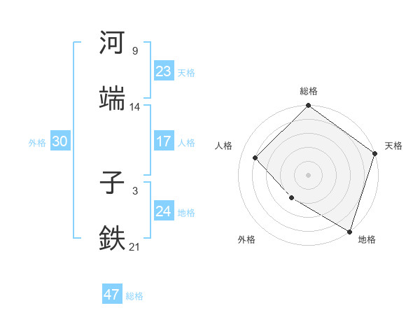 河端 子鉄さんの総格は47画の5点!