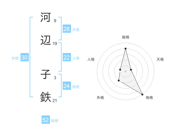河辺 子鉄さんを姓名の画数から五運を鑑定
