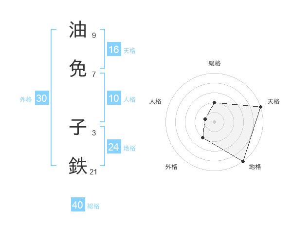 油免 子鉄さんを姓名の画数から五運を鑑定