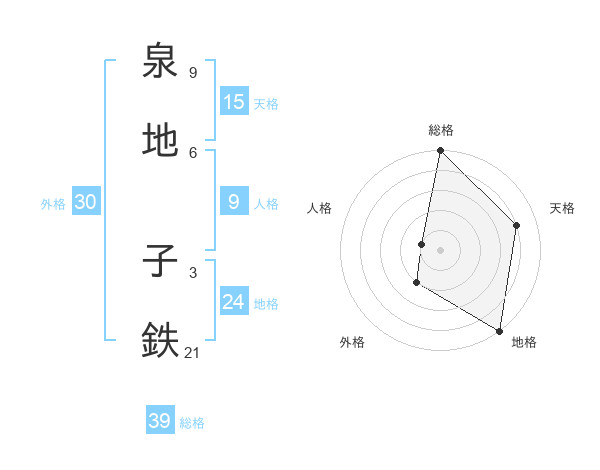 泉地 子鉄さんの総格は39画の5点!