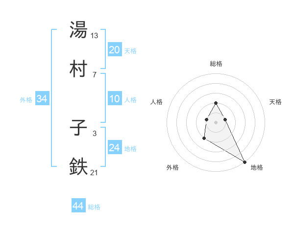 湯村 子鉄さんの総格は44画の2点!