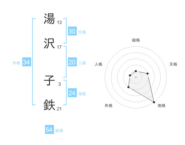 湯沢 子鉄さんを姓名の画数から五運を鑑定
