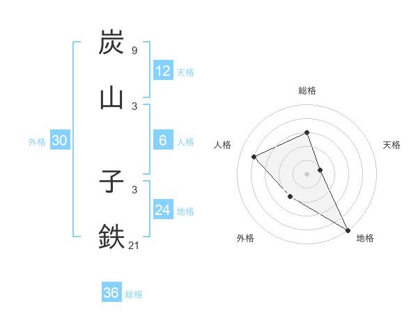 炭山 子鉄さんを姓名の画数から五運を鑑定