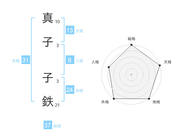 真子 子鉄さんの天格は13画の5点!