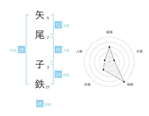 矢尾 子鉄さんを姓名の画数から五運を鑑定