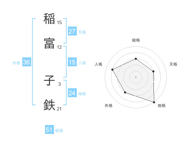 稲富 子鉄さんの総格は51画の3点!