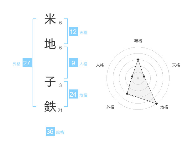 米地 子鉄さんの総格は36画の3点!
