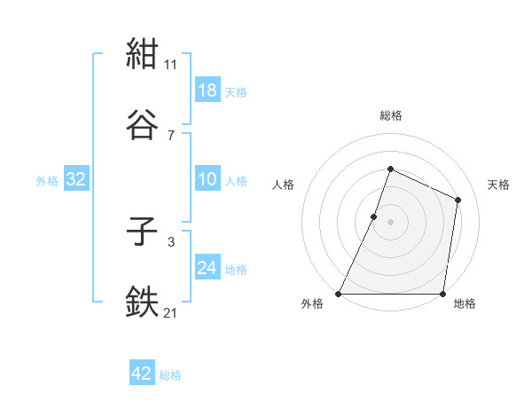 紺谷 子鉄さんを姓名の画数から五運を鑑定