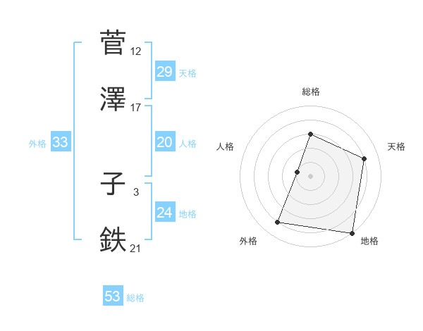 菅澤 子鉄さんの総格は53画の3点!