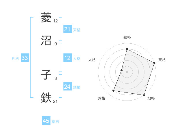 菱沼 子鉄さんの総格は45画の4点!