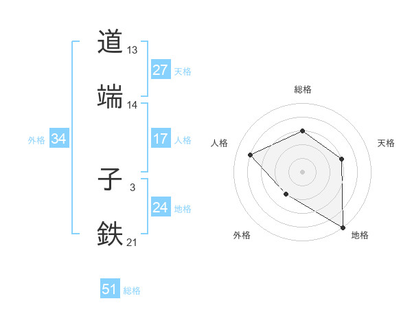 道端 子鉄さんの総格は51画の3点!