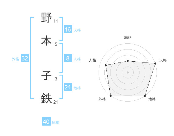 野本 子鉄さんを姓名の画数から五運を鑑定