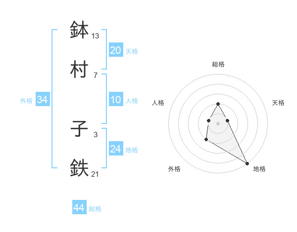 鉢村 子鉄さんの外格は34画の2点!