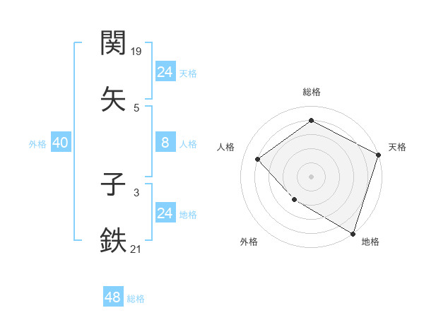 関矢 子鉄さんを姓名の画数から五運を鑑定