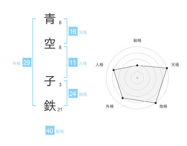 青空 子鉄さんを姓名の画数から五運を鑑定