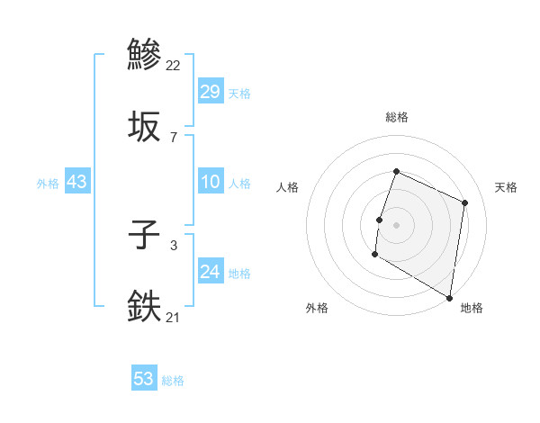 鰺坂 子鉄さんの総格は53画の3点!