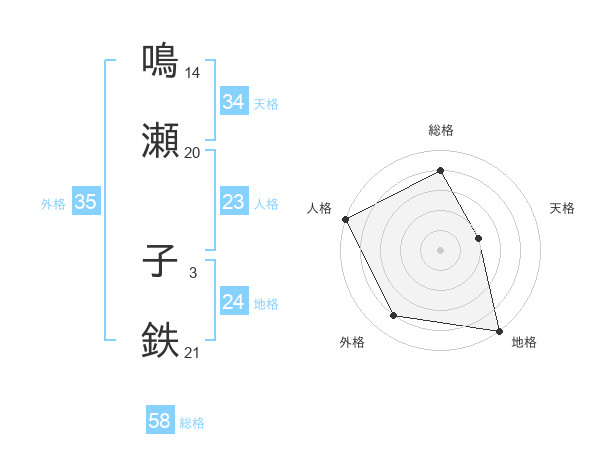 鳴瀬 子鉄さんの総格は58画の4点!