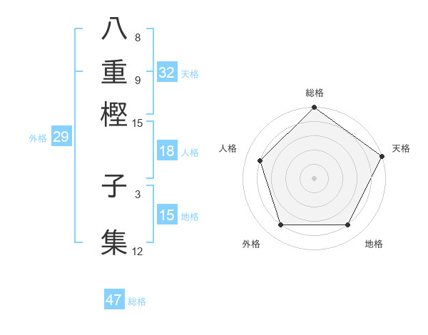 八重樫 子集さんを姓名の画数から五運を鑑定