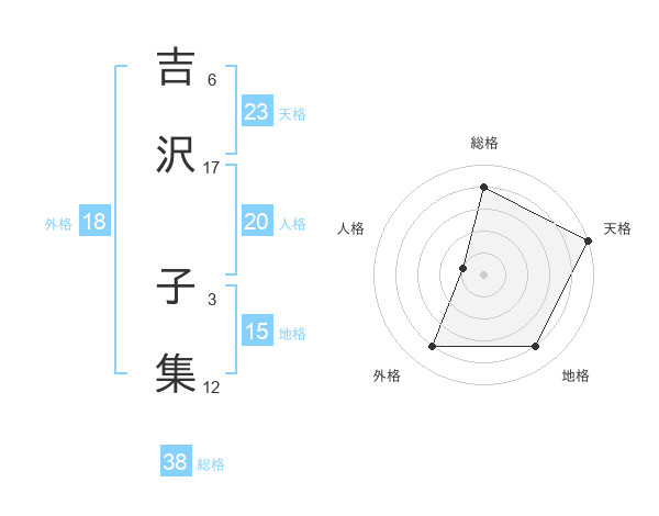 吉沢 子集さんの天格は23画の5点!
