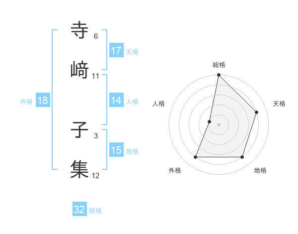 寺﨑 子集さんを姓名の画数から五運を鑑定